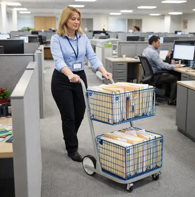 Designed for efficiency and durability, this heavy-duty medium capacity mail trolley is ideal for busy mailrooms, offices, schools, and commercial environments. It is also well suited for use within hospitals, pharmacies, and medical facilities, where it can be used to safely transfer patient notes, documentation, and internal mail, or to deliver items between wards and departments.